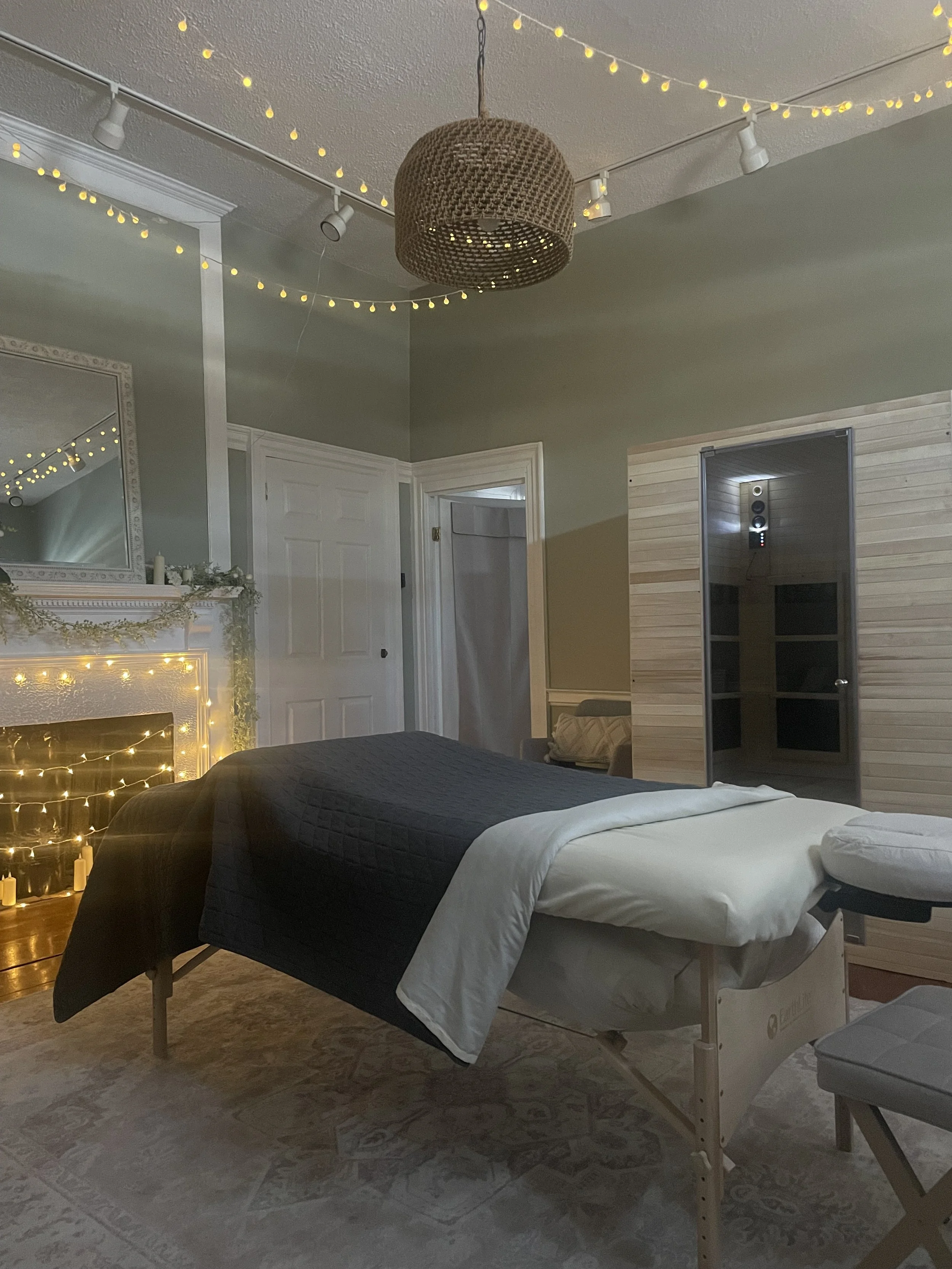 Add a session to your massage service or as a standalone service. Individual sessions are available as well as packages. This is an infrared low EMF sauna that can seat two people.