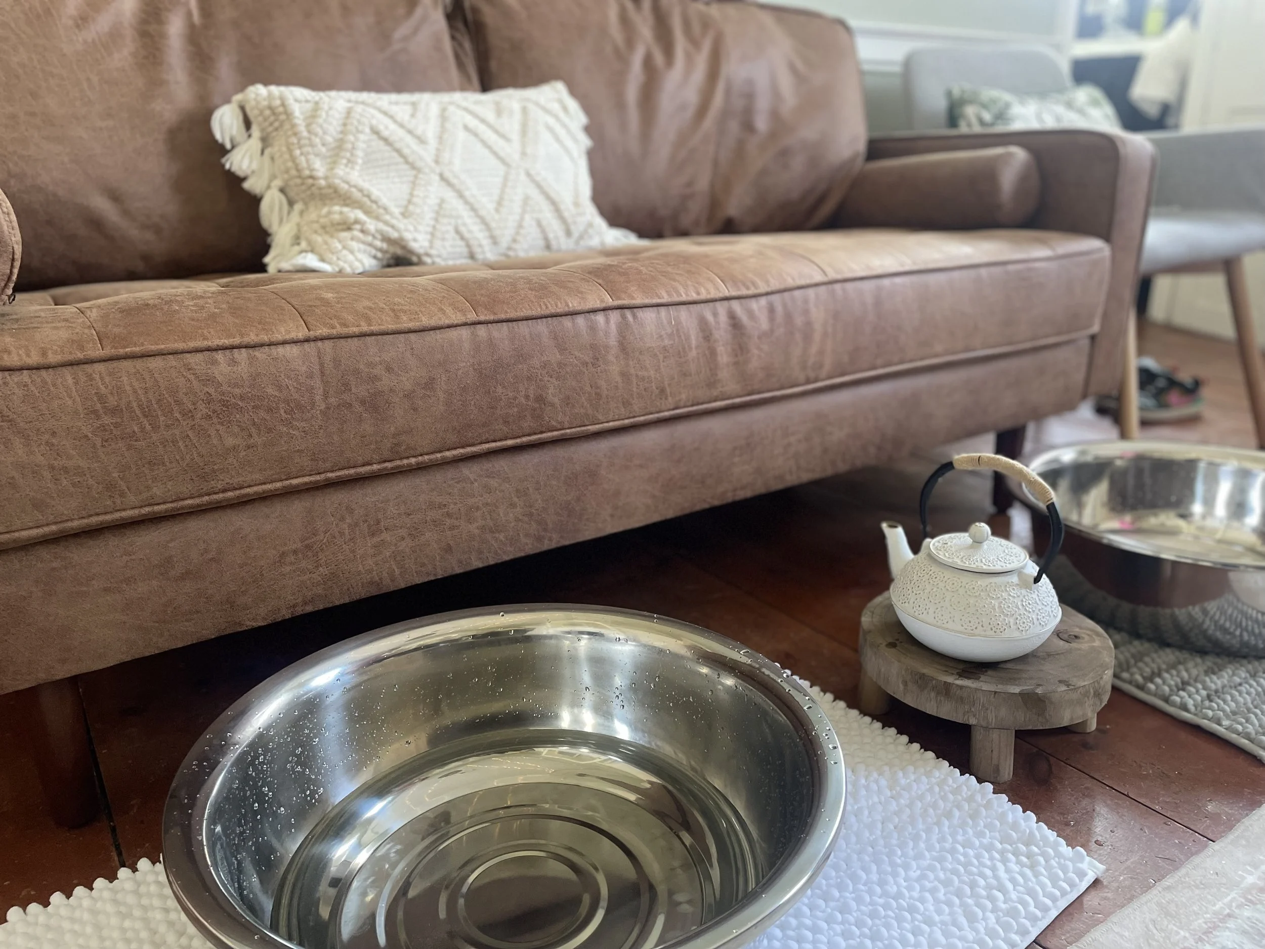 Relax with a foot soak, selecting from the following: Island Hoppers, Peppermint Twist, Rest and Rejuvenate, and Ginger Snaps